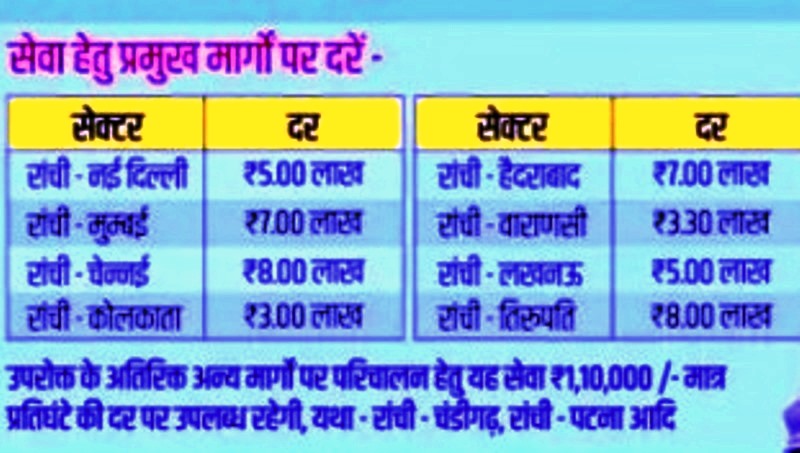 रांची एयरपोर्ट से एयर एम्बुलेंस का जो किराया सरकार द्वारा घोषित किया गया है. बोकारो एयरपोर्ट से एयर एम्बुलेंस सेवा लेने पर उस किराये से 50 हज़ार रूपये अधिक देने होंगे. सरकार एयर एम्बुलेंस सेवा दर को कम करने का प्रयास कर रही है.