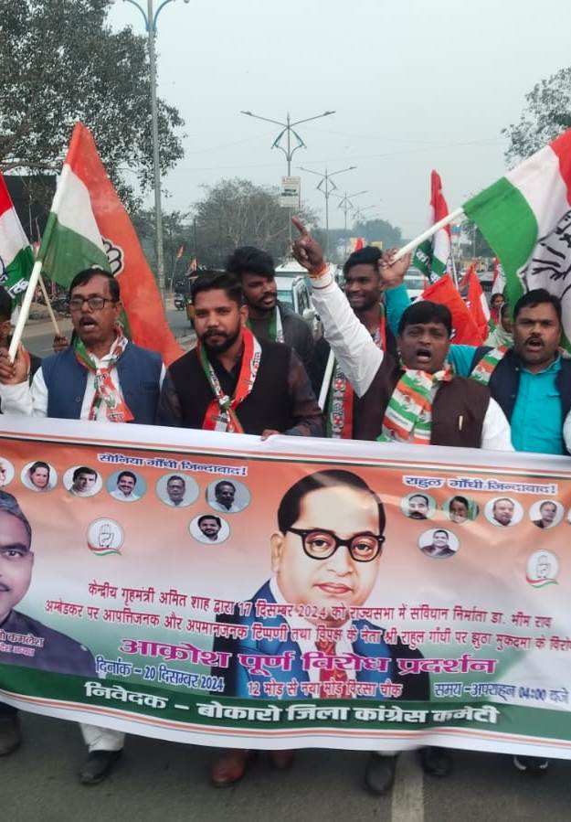 बोकारो में कांग्रेस का जोरदार विरोध प्रदर्शन: अमित शाह की टिप्पणी पर मांग की माफी