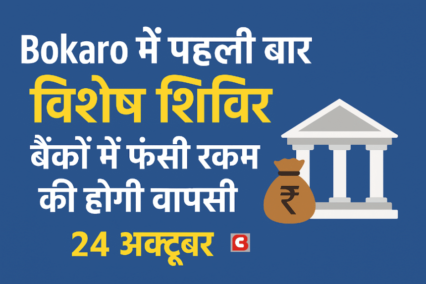 बोकारो में 24 अक्टूबर को कैंप टू स्थित जायका हैप्पेनिंग्स में अनक्लेम्ड डिपॉजिट पर जिला स्तरीय विशेष शिविर आयोजित होगा। उपायुक्त अजय नाथ झा करेंगे शुभारंभ। बैंक अधिकारी निष्क्रिय खातों, फिक्स्ड डिपॉजिट और पीपीएफ से जुड़ी जानकारी देकर नागरिकों को भूली जमा राशि वापस पाने में मदद करेंगे।