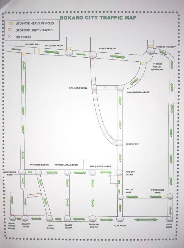 जिला प्रशासन के निर्देश पर पुलिस उपाधीक्षक यातायात, बोकारो द्वारा निम्न रूट चार्ट जारी किया गया है: