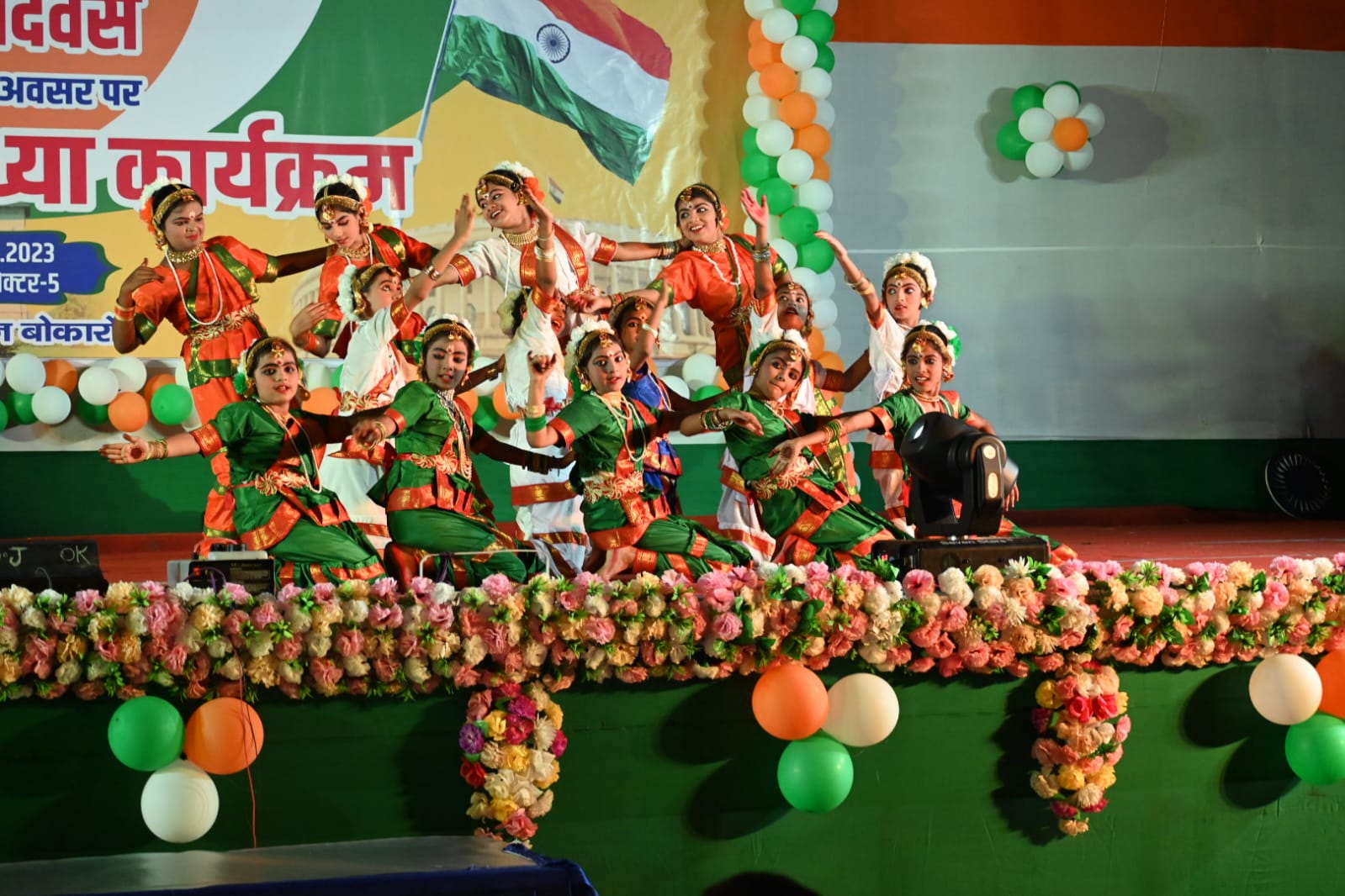 सेक्टर वन स्थित सेंट जेवियर विद्यालय के बच्चों ने भारत भारत हम सबकी शान है तू…,सेक्टर पांच स्थित जीजीपीएस के बच्चों ने जननी जन्मभूमि…,सेक्टर पांच स्थित चिन्मया विद्यालय के बच्चों ने धन्य धान्य हमर छोटा नागपुर…,सेक्टर चार स्थित जीजीपीएस के बच्चों ने हर घर तिरंगा…,सेक्टर चार स्थित एमजीएम विद्यालय के बच्चों द्वारा शत-शत नमन है मेरी मिट्टी मेरा देश…,डीपीएस बोकारो के बच्चों द्वारा सुजलाम सफलाम मलयज शीतलाम…,डीएवी सेक्टर चार के बच्चों द्वारा मेरी माटी मेरा देश…,सेक्टर-12 स्थित पेंटेकोस्टल असेंबली स्कूल के छात्रों ने देश भक्ति नृत्य…,सेक्टर पांच स्थित अय्यप्पा विद्यालय के बच्चों द्वारा वंदे मातरम भारत माता की जय थीम पर अपनी अनोखी अंदाज में संगीतमय फैशन शो प्रस्तुति से चार चांद लगा दिया।
