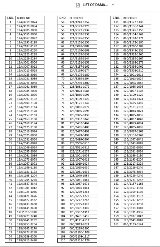 प्रथम चरण के तहत उन नियमित कर्मचारियों, रिटेंशन के मामलों, और ईएफबीएस सदस्यों का स्थानांतरण किया जाएगा जिनका आवास उक्त क्षतिग्रस्त ब्लॉकों में स्थित है। इन सभी आवंटियों को अन्यत्र सुरक्षित ब्लॉकों में स्थानांतरित किया जाएगा।