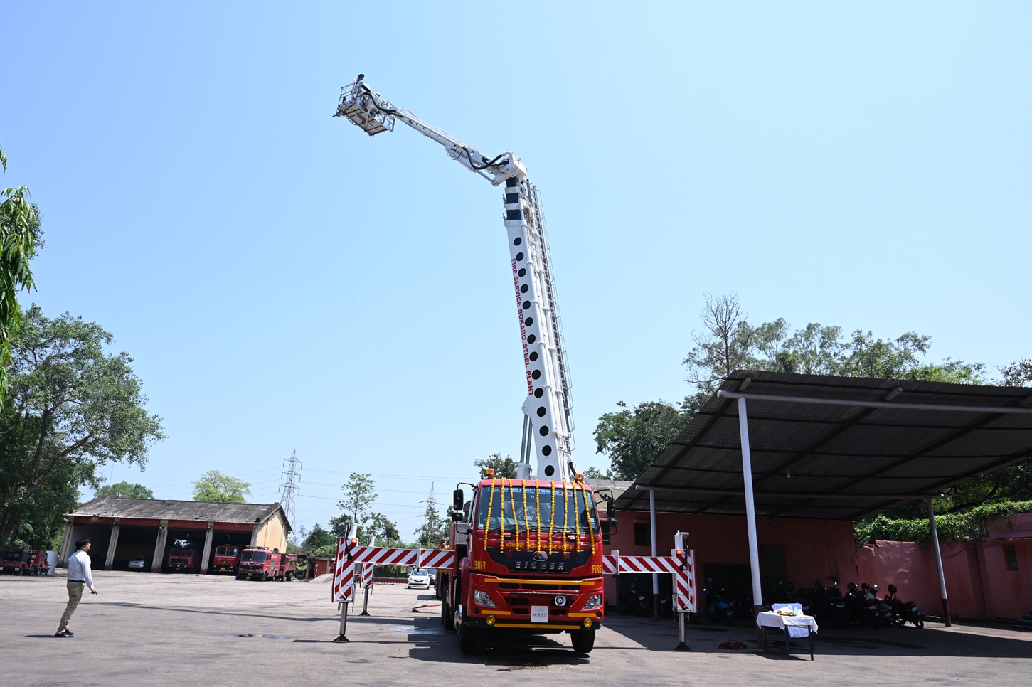 यह हाईटेक वाहन 42 मीटर की ऊंचाई तक कार्य करने में सक्षम है। इसमें 360 डिग्री घूमने वाला बूम लगा है, जिससे सटीक पोजिशनिंग संभव होती है। इसकी मदद से जटिल रेस्क्यू ऑपरेशनों और ऊंचाई पर फायर फाइटिंग दोनों को बेहद कुशलता से अंजाम दिया जा सकता है।