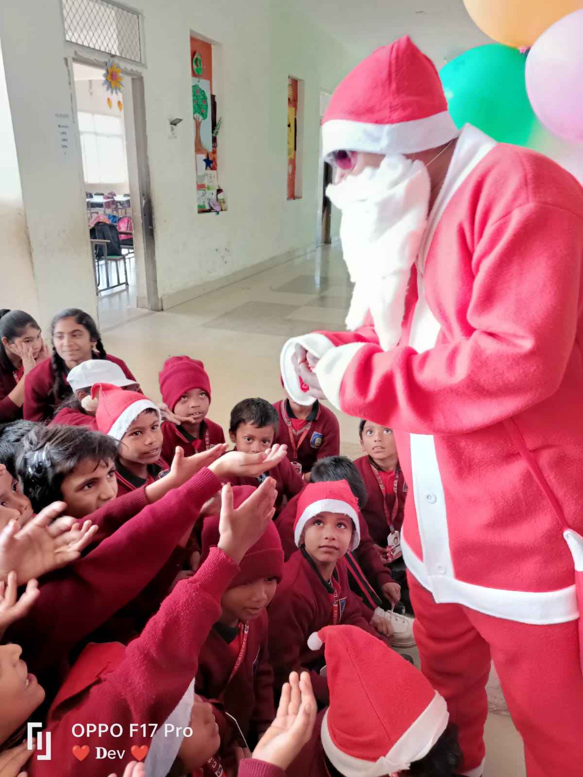 इस अवसर पर स्कूल में पूल लंच भी आयोजित किया गया जिसका भरपूर आनंद बच्चो ने लिया। इस बीच सांता क्लॉज बनकर आए टीचर ने सभी बच्चों को टॉफियां बांटी और उनके साथ नृत्य किया। कार्यक्रम में बच्चियां एंजल के रूप में सज-धजकर पहुंची। साथ ही जिंगल बेल आदि गीतों पर नृत्य किया। Video: