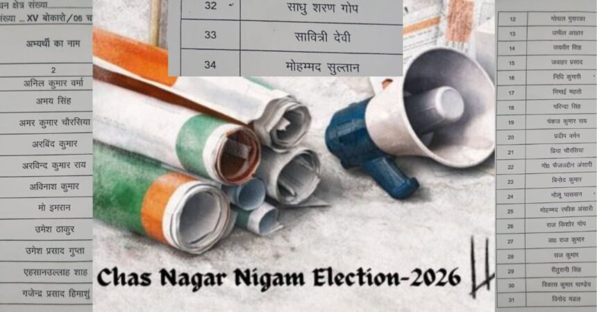 Bokaro: चास नगर सीट पर चुनावी तस्वीर अब साफ हो गई है। प्रादेशिक निर्वाचन क्षेत्र संख्या XV (बोकारो/06 चास नगर) के तहत नामांकन जांच पूरी होने के बाद निर्वाचन पदाधिकारी ने वैध प्रत्याशियों की सूची जारी कर दी है। जांच के उपरांत कुल 34 अभ्यर्थियों के नामांकन स्वीकार किए गए हैं, जबकि तीन अभ्यर्थियों के नामांकन पत्र नियमों के अनुरूप न पाए जाने के कारण अस्वीकृत कर दिए गए।