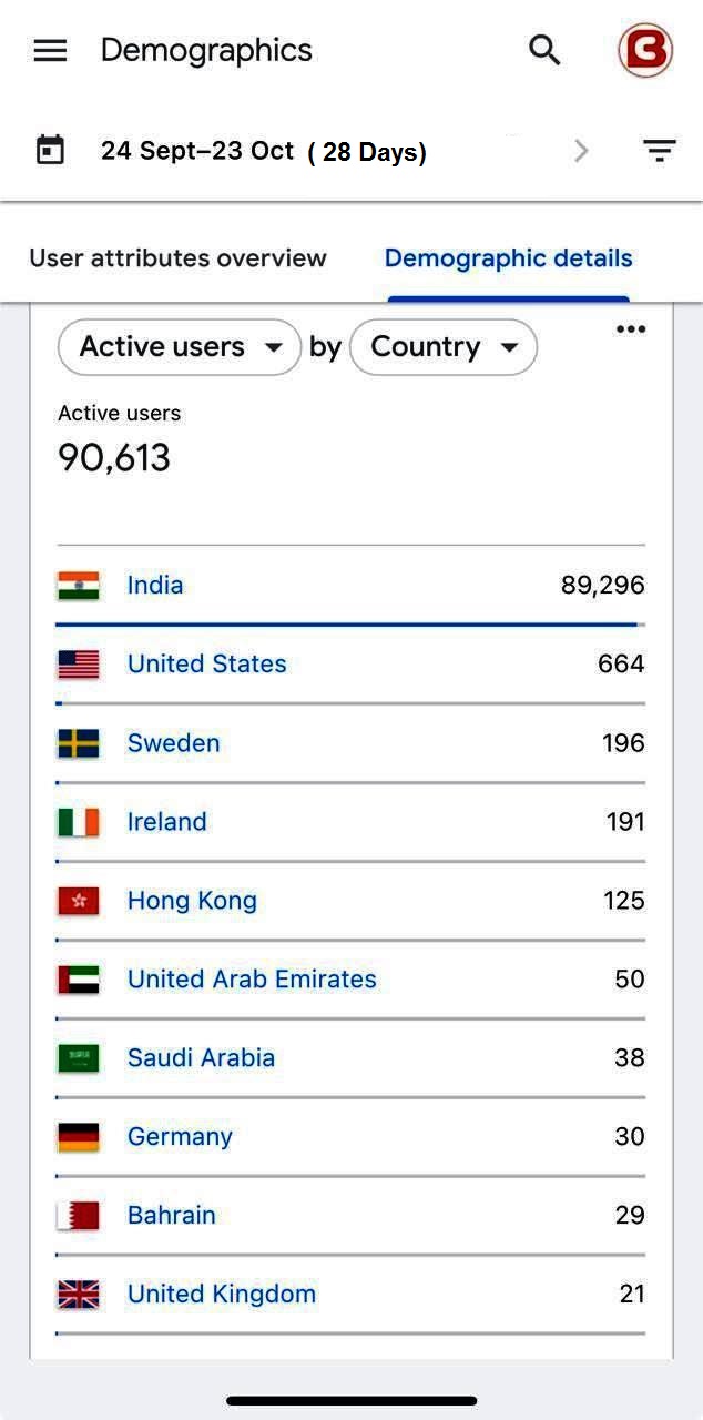 www.currentbokaro.com की पहुंच सिर्फ बोकारो या भारत तक सीमित नहीं है। अंतरराष्ट्रीय स्तर पर भी इस पोर्टल ने अपनी उपस्थिति दर्ज की है। इतने बड़े संख्या में यूज़र्स का जुड़ना इस बात का प्रमाण है कि लोगों को यहां की खबरों पर पूरा विश्वास है। देश के हर कोने से लोग इस पोर्टल पर भरोसा करते हैं। 89,296 यूज़र्स भारत से थे, जबकि अमेरिका, स्वीडन, आयरलैंड, हांगकांग, यूएई, सऊदी अरब, जर्मनी, बहरीन और ब्रिटेन जैसे देशों से भी इसे लगातार विजिट किया जा रहा है।