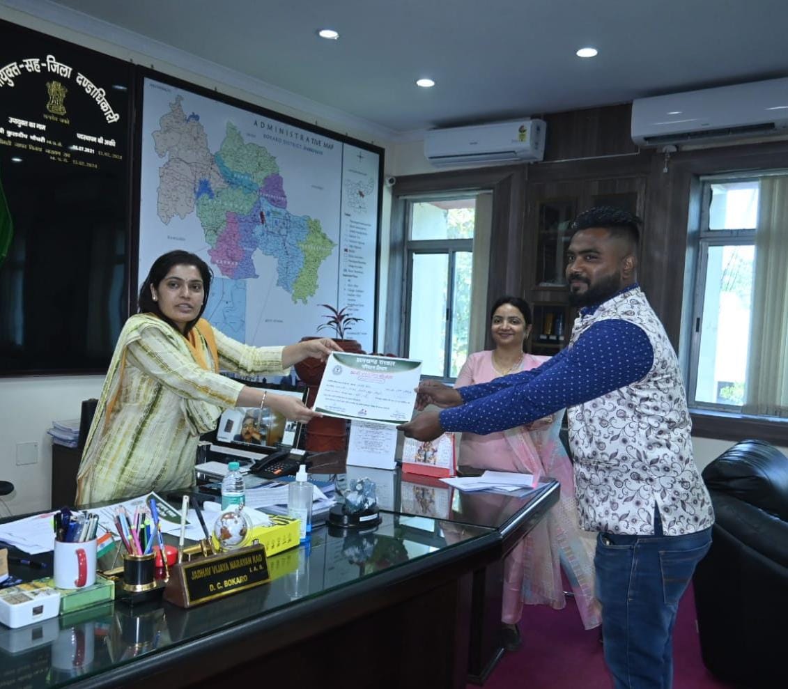 Bokaro: समाहरणालय स्थित कार्यालय कक्ष में आयोजित जिला सड़क सुरक्षा समिति की बैठक में उपायुक्त जाधव विजया नारायण राव ने सड़क दुर्घटना में घायल लोगों को गोल्डेन आवर में अस्पताल पहुंचाने वाले दो गुड सेमेरिटन (अच्छे मददगार) पेटरवार प्रखंड निवासी रजनीश कुमार एवं चंद्रशेखर कुमार को प्रशस्ति पत्र देकर सम्मानित किया।