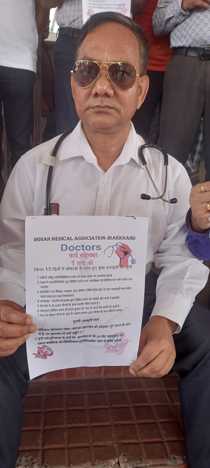 डॉक्टरों ने कहा कि वे सरकार का विरोध नहीं कर रहे हैं, बल्कि चाहते हैं कि सरकार का ध्यान इन हमलों की ओर जाए और डॉक्टरों के साथ दुर्व्यवहार बंद हो। उन्होंने कुछ उदाहरण दिए जैसे कि डीडीसी के अंगरक्षक ने हजारीबाग में एक डॉक्टर के साथ दुर्व्यवहार किया जाना। रांची के डॉक्टर के साथ उनके घर में मारपीट की गई। हाल ही में पेटरवार में डॉक्टरों पर हमले की कोशिश हुई पर पुलिसवाले सही वक़्त पर आकर उन्हें बचा लिए।