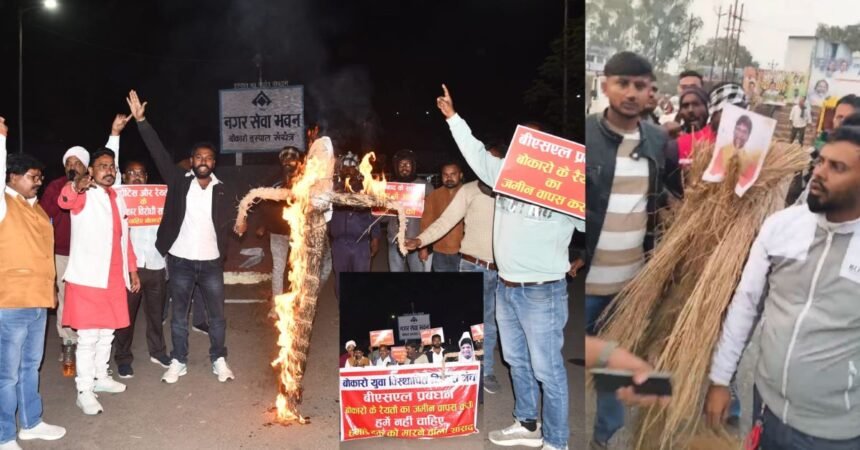 Bokaro: बीजेपी (BJP) शासित राज्यों में जहाँ अतिक्रमण हटाओ अभियान तेज़ी से चल रहे हैं, वहीं बोकारो में इसका बिल्कुल उल्टा दृश्य देखने को मिला। आरोप है कि धनबाद के सांसद ढुल्लू महतो ने बोकारो स्टील प्लांट (BSL) और जिला प्रशासन द्वारा टाउनशिप क्षेत्र में चलाए जा रहे अतिक्रमण हटाओ अभियान को रुकवा दिया। इसके विरोध में आज लोगों ने ‘अतिक्रमण हितैषी सांसद मुर्दाबाद’ जैसे तीखे नारे लगाए और दो अलग-अलग जगहों पर उनका पुतला दहन किया।