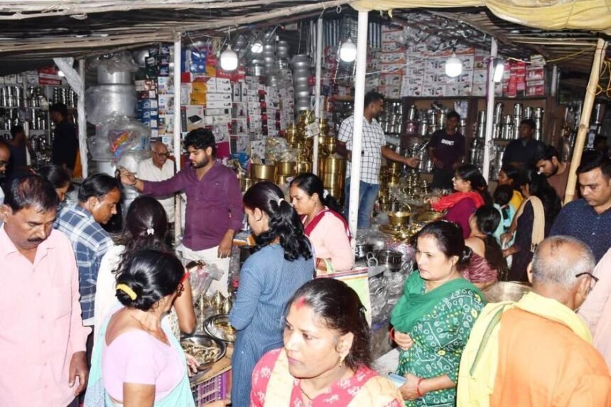 Bokaro: धनतेरस के शुभ अवसर पर शनिवार को जिले के बाजारों में खरीदारों की भारी भीड़ देखने को मिली। शहरवासी सोना, चांदी, हीरा, बर्तन और अन्य त्योहार संबंधी वस्तुएं खरीदने के लिए दुकानों पर पहुंचे। ऑटोमोबाइल शोरूम और इलेक्ट्रॉनिक स्टोरों में भी ग्राहकों की लंबी कतारें नजर आईं। कुल मिलाकर, बोकारो बाजारों में धनतेरस के दिन करीब 80 करोड़ रुपये से अधिक का कारोबार हुआ।