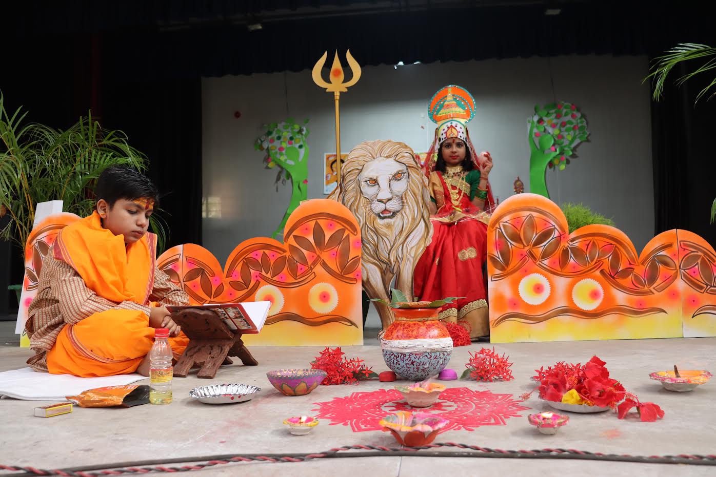 The enchanting presentations by the primary class teachers captivated the children, becoming the heart of attraction. Devotional ambiance filled the air as Akshay Sharma recited the Durga Stotra and Saanvi Singh sang devotional songs.