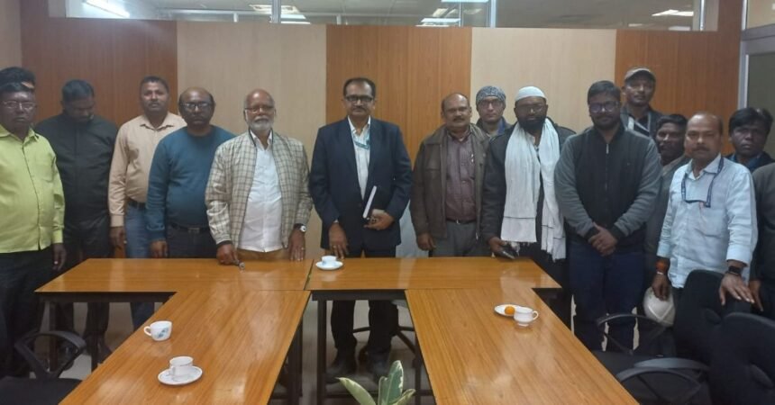 Bokaro: बोकारो स्टील प्लांट (BSL) के सीसीएस/एसएमएस-2 के मुख्य महाप्रबंधक डी. सक्सेना के साथ विभागीय कर्मचारियों एवं ठेकाकर्मियों की विभिन्न मांगों को लेकर जय झारखंड मजदूर समाज के महामंत्री बी.के. चौधरी के नेतृत्व में यूनियन प्रतिनिधिमंडल की वार्ता हुई। बैठक में मुख्य महाप्रबंधक ने जनवरी माह में हुए अप्रत्याशित उत्पादन के लिए सभी कर्मचारियों और ठेकाकर्मियों को बधाई देते हुए उनके योगदान की सराहना की।