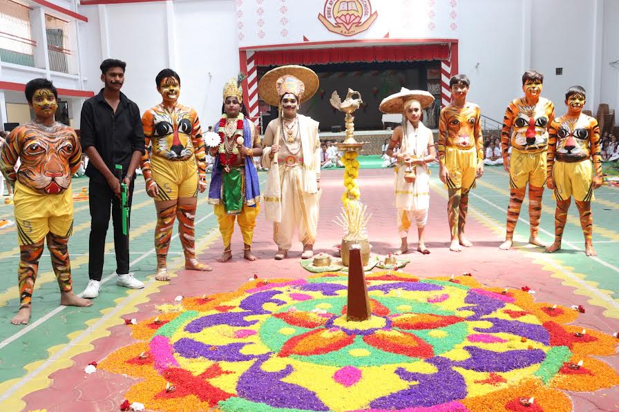 The artistic fervor extended beyond Rangoli, as the students graced the stage with captivating performances, including the evocative Mahabali and Tiruvatirakali renditions, and mesmerising Mohiniyattam dances. A highlight was the spellbinding Puli Kali dance, wherein children artistically portrayed a mythological tiger.