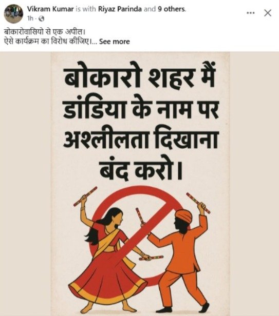 Bokaro: बोकारो शहर में इस साल नवरात्र के दौरान डांडिया और गरबा कार्यक्रमों की भरमार देखने को मिल रही है। पहले केवल एक-दो स्थानों पर ही डांडिया-गरबा का आयोजन होता था और वह भी पूरे श्रद्धा भाव और परंपरा के साथ। लेकिन इस बार हालात बिल्कुल अलग हैं। डांडिया-गरबा आयोजनों में पश्चिमी शैली और फूहड़ता ने धार्मिकता और संस्कृति को पीछे छोड़ दिया है। कई लोग जो अपने परिवार-बच्चों के साथ इस पवित्र दिनों में डांडिया खेलने पहुंचे थे, ऑर्केस्ट्रा जैसा माहौल और फूहड़ गानों पर ठुमके देखकर आहत और निराश हो गए।