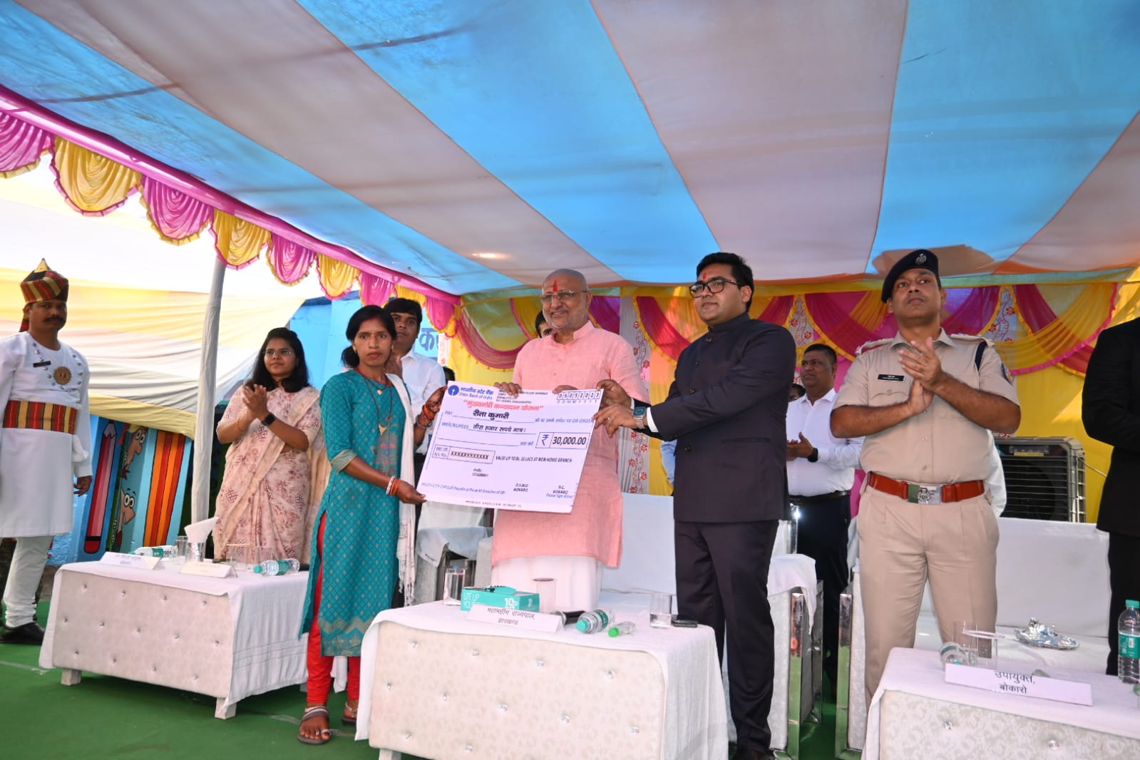 महामहिम राज्यपाल श्री सी पी राधाकृष्णन ने मंच से विभिन्न योजनाओं के लाभुकों के बीच सांकेतिक रूप से परिसंपत्ति का भी वितरण किया। उन्होंने बिरसा हरित ग्राम योजना, पीएम ए वाई ग्रामीण, सिंचाई कूप योजना, दीदी बाड़ी योजना, मुख्यमंत्री राज्य वृद्धावस्था, मुख्यमंत्री राज्य निराश्रित महिला सम्मान पेंशन योजना, स्वामी विवेकानंद निःशक्त स्वालंबन प्रोत्साहन पेंशन योजना, प्री मैट्रिक छात्रवृति, राशन कार्ड योजना, सीएसआर स्कूटी योजना एवं सावित्री बाई फुले किशोरी समृद्धि योजना के लाभुकों के बीच सांकेतिक रूप से परिसंपत्ति/स्वीकृति पत्र का वितरण किया।