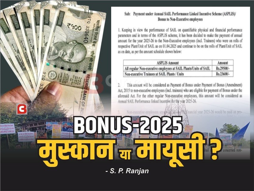 SAIL ने वर्ष 2025-26 के लिए Annual SAIL Performance Linked Incentive Scheme (ASPLIS) लागू करते हुए बोनस की राशि तय की है। इसके तहत नियमित गैर-कार्यपालक कर्मचारियों को ₹29,500 और प्रशिक्षु गैर-कार्यपालक कर्मचारियों को ₹23,600 का भुगतान किया जाएगा।