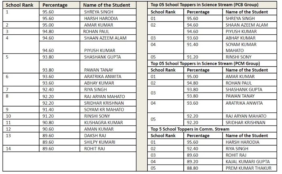 Shreya Singh, excelling in PCB, and Harsh Harodia, in Commerce, emerged as the top scorers of the class, each securing an impressive 95.60 percent.