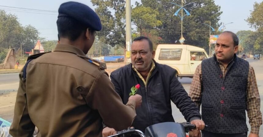 इस दौरान यातायात नियमों का पालन नहीं करने वाले वाहन चालकों को समझाया गया और सड़क सुरक्षा के प्रति जागरूक किया गया। पुलिस व समिति के सदस्यों ने नियमों का पालन करने और दूसरों को भी जागरूक करने की अपील की। विशेष पहल के तहत बिना हेलमेट चल रहे कुछ चालकों को गुलाब का फूल और फूलों की माला पहनाकर प्रतीकात्मक रूप से जागरूक किया गया। चालकों ने आगे से हेलमेट और जूता पहनकर वाहन चलाने का संकल्प लिया।