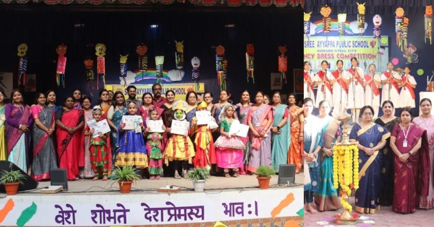 Bokaro: Sree Ayyappa Public School, Sector 5, came alive with colours, creativity, and culture as it hosted a Fancy Dress Competition on the theme “Veshe Shobhate Desh Premsya Bhavah” (Costume Reflects the Spirit of Patriotism). Over 200 students from Pre-Nursery to Class 1 participated, showcasing India’s rich tribal heritage, traditions, and attire through vibrant performances.